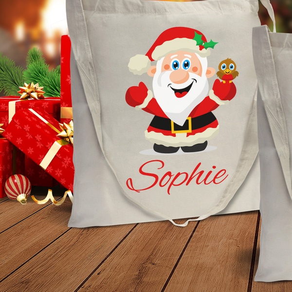 Boost the festive atmosphere with one or two Christmas bags made from calico and personalised with a choice of name and design