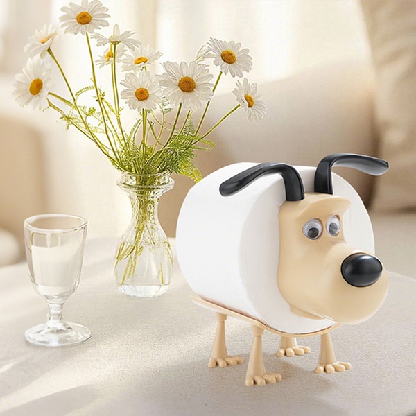 Embrace whimsy with a playful dog-shaped toilet paper holder that keeps rolls organized while adding character to the bathroom
