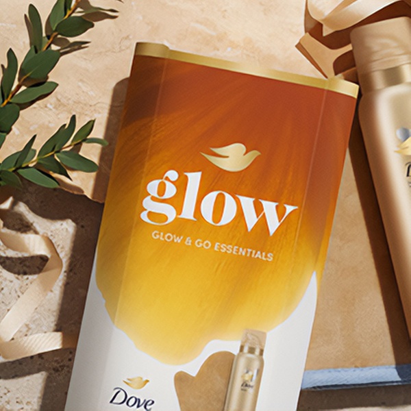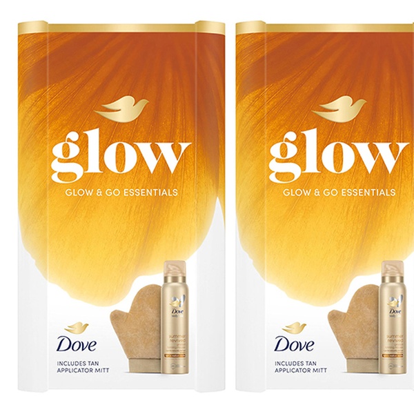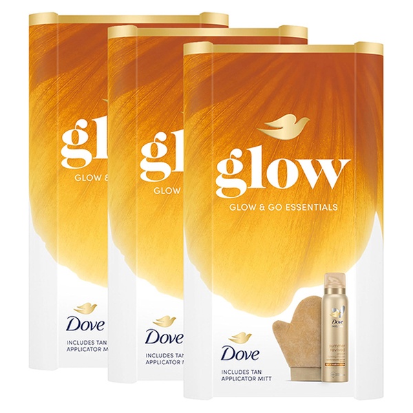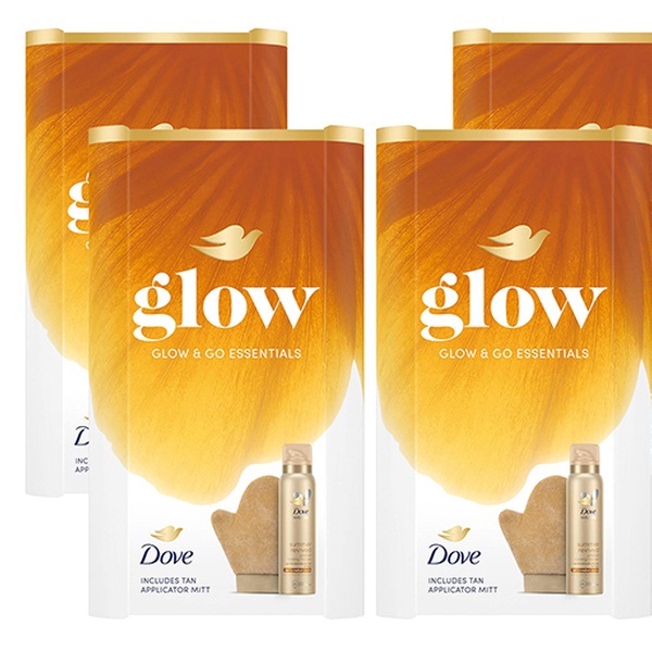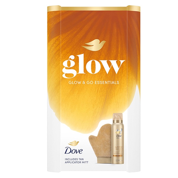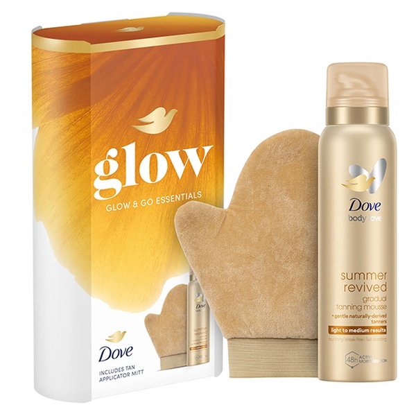 - Dove Glow & Go Essentials Gift Set is a skincare pamper kit that includes a self-tan mousse and a luxury applicator mitt