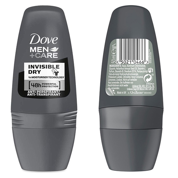 - Dove Invisible Dry contains translucent, sweat-fighting ingredients that have been tested on 100 colours to leave no white deodorant stains