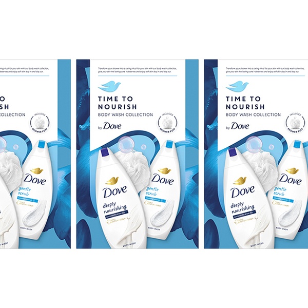 Today's Groupon offers Dove Time to Nourish Body Wash Collection with Shower Puff 225 ml, distributed by Rex Brown Ltd.