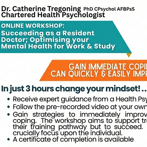 This comprehensive workshop is specifically designed to equip trainee doctors with strategies to quickly and easily improve their mental health and psychological wellbeing, directly addressing the unique pressures of their training pathway.