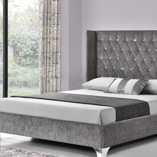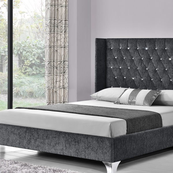Featuring chrome detailed legs and wingback headboard, this bed features a contemporary design suitable for a variety of bedroom decors