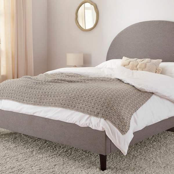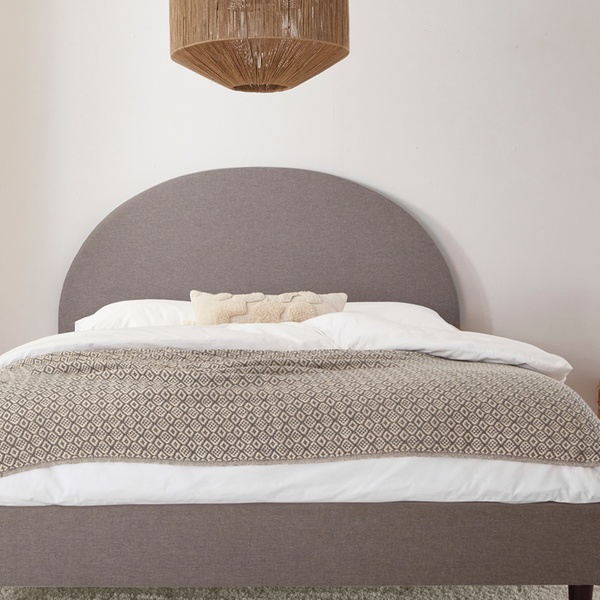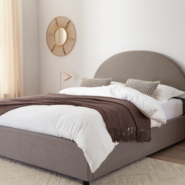 - Gracefully curved arched headboard adds a timeless, elegant statement