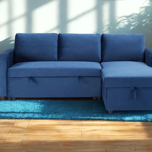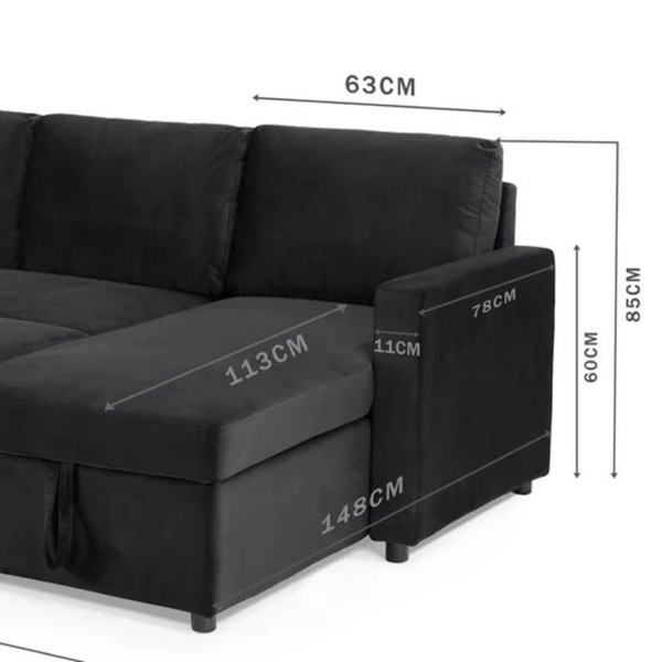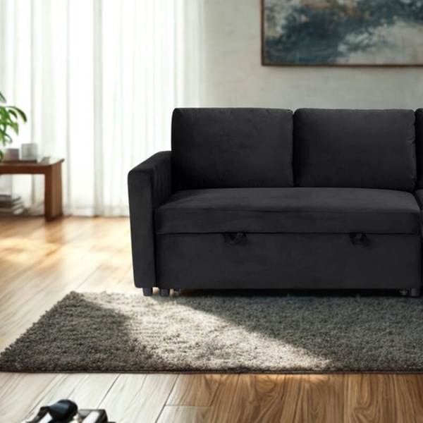 - Stylish 3-seater L-shaped sofa bed upholstered in premium plush velvet