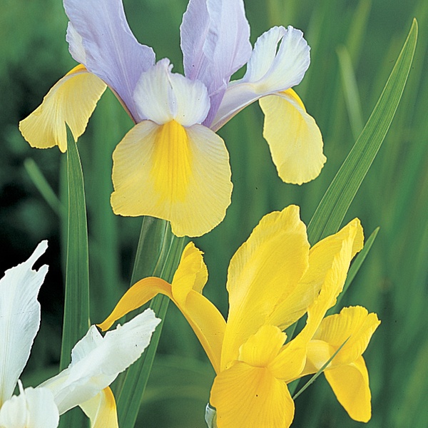 - With their straplike, grey-green leaves and sturdy stems, Dutch Iris are ideal when planted in groups, beds, and borders, and make a superb addition to any pot