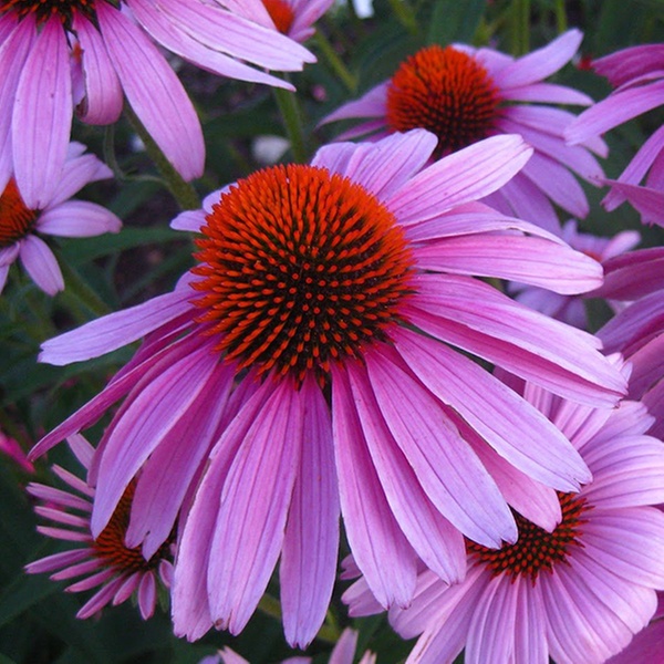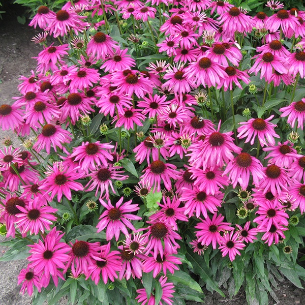 Great for garden borders, this compact purple coneflower features large, fragrant, rosy-pink flowers through late summer and early autumn