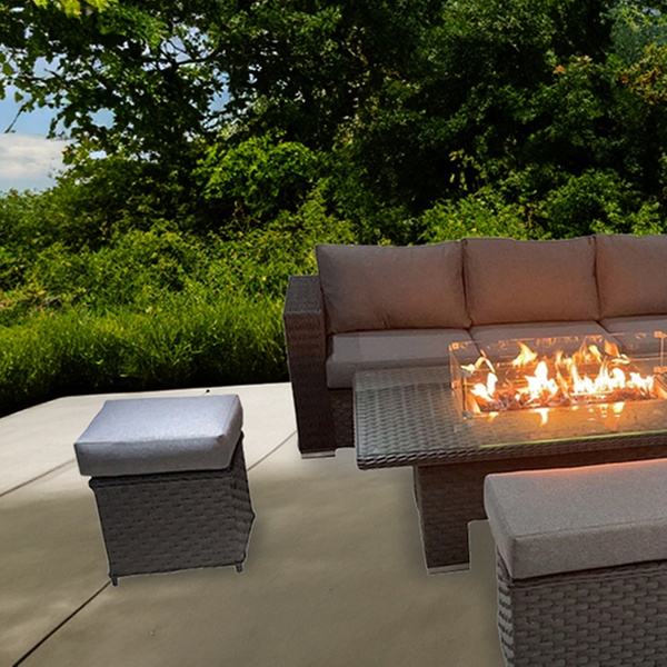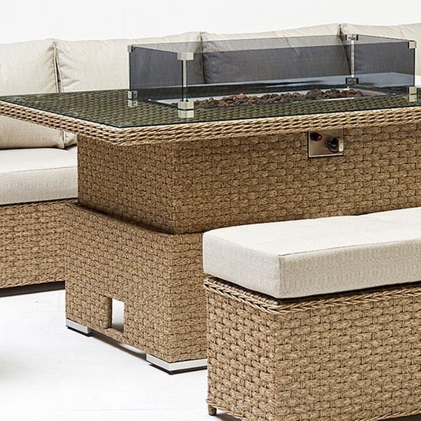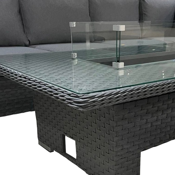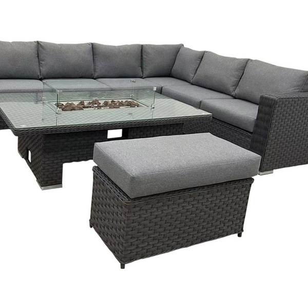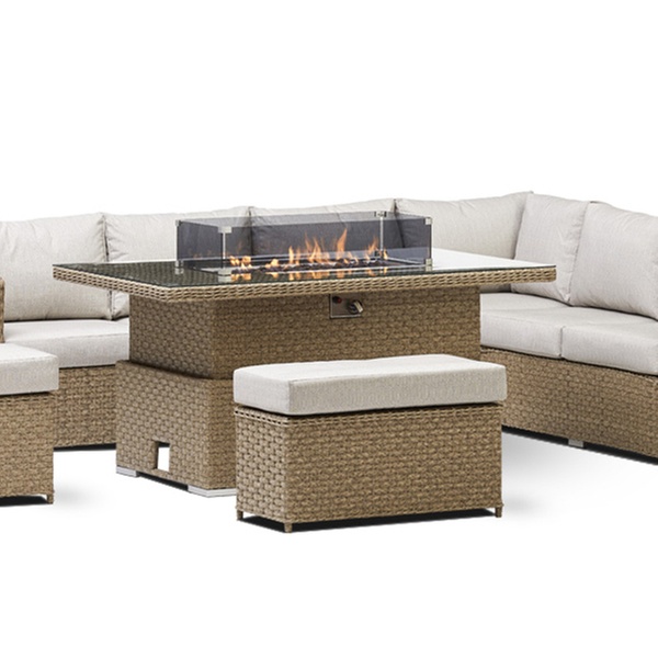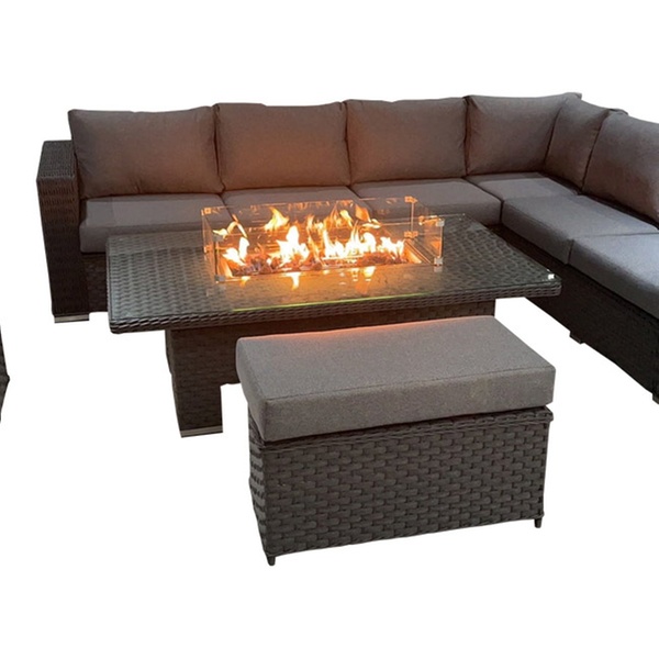 Featuring a right hand-facing corner sofa, this dining set comes with a fire pit and can be ideal for enjoying the garden or the patio