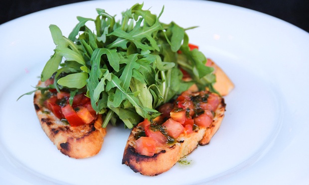 A meal of Italian flavours at Elistano may begin with a starter such as mixed seafood soup or a bruschetta with parma ham, rocket and cherry tomato. For the main course, diners may select grilled salmon fillet with grilled vegetables; chicken parmigiana with sauteed new potatoes; or penne in a primavera tomato sauce with asparagus, courgettes and aubergines. Sweet flavours may arrive courtesy of a homemade tiramisu or panna cotta. Fare may be accompanied by a glass of house wine or a beer each. Customers should note that menu items are subject to change.