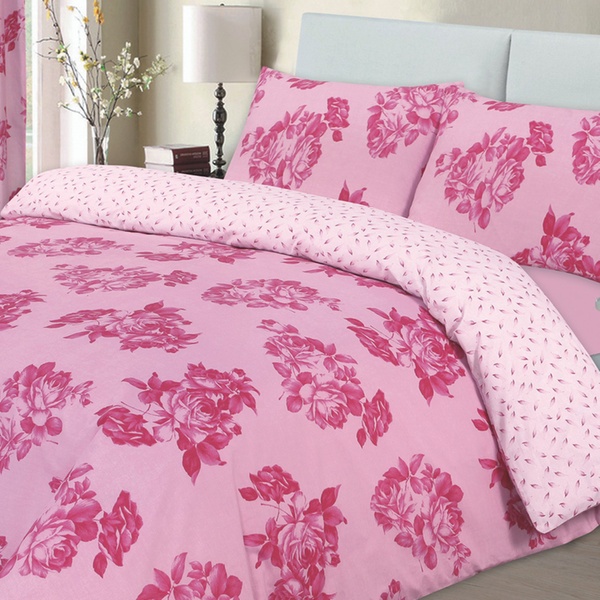 This four-piece bed set includes a duvet cover with two complementing pillow cases and a matching fitted sheet