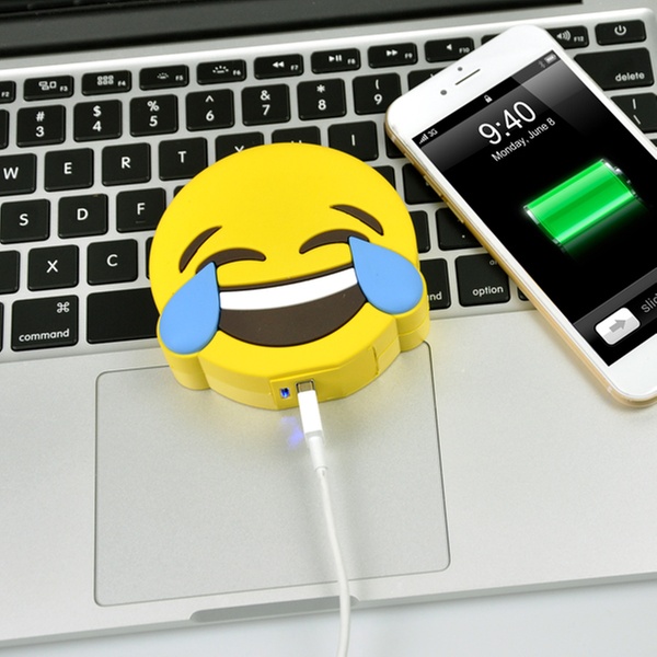 This portable fun-looking emoji power bank can give a phone some extra battery power when needed