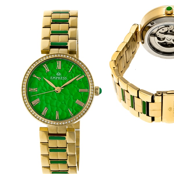 Update an everyday look with this elegant watch featuring a stainless steel bracelet and an observation caseback to view movement