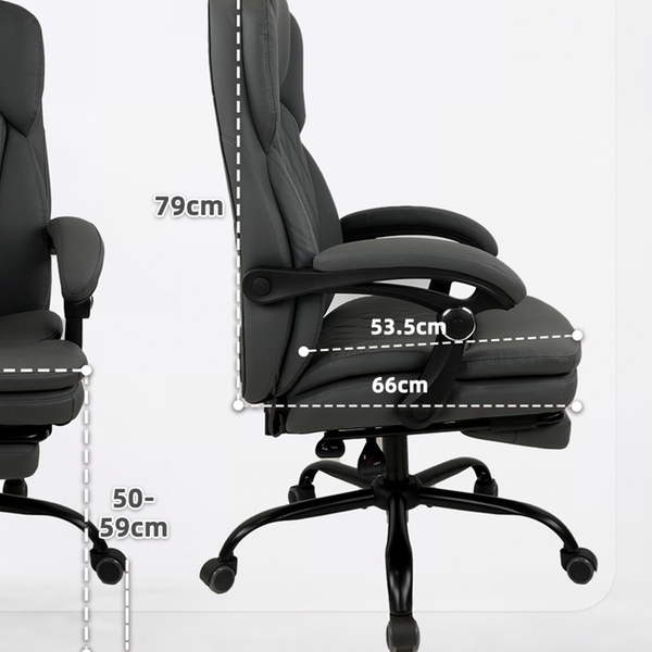 - Ergonomic design with lumbar support, 13 cm thick padded seat, and 79 cm high backrest for superior comfort