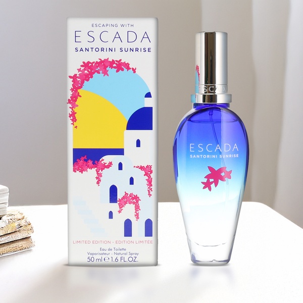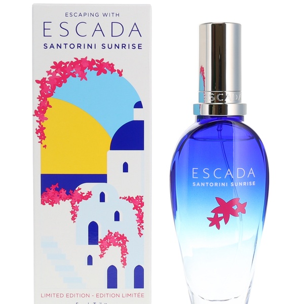 Escape to a sun-soaked paradise with Escada Santorini Sunrise Eau de Toilette, a 50ml fruity floral fragrance for women that captures the essence of a Greek island vacation with notes of mandarin and bergamot sorbet, delicate jasmine, and a warm base of musk and sandalwood