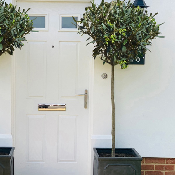 Slow-growing and self-fertile, this evergreen olive tree adds charm and a welcoming touch to any garden entrance