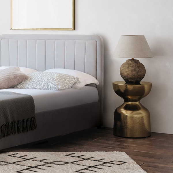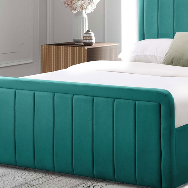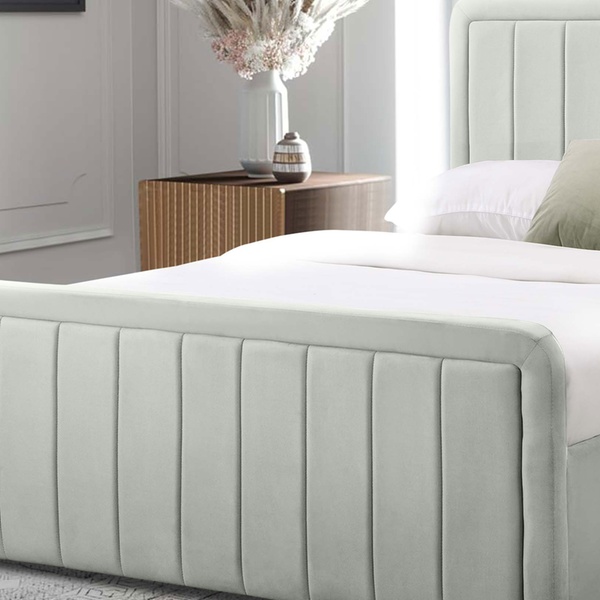 Available with an optional mattress, this fabric bed can make a matching addition to most modern interiors