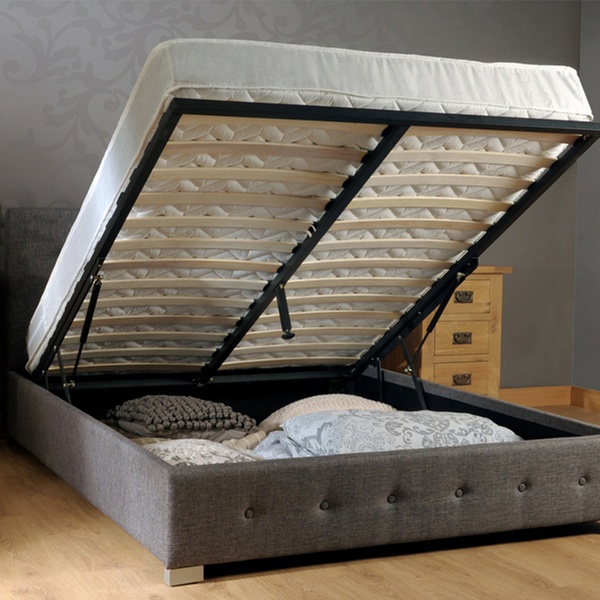 Choose from the following options for a fabric Ottoman bed frame and mattress in black, grey or mocha.