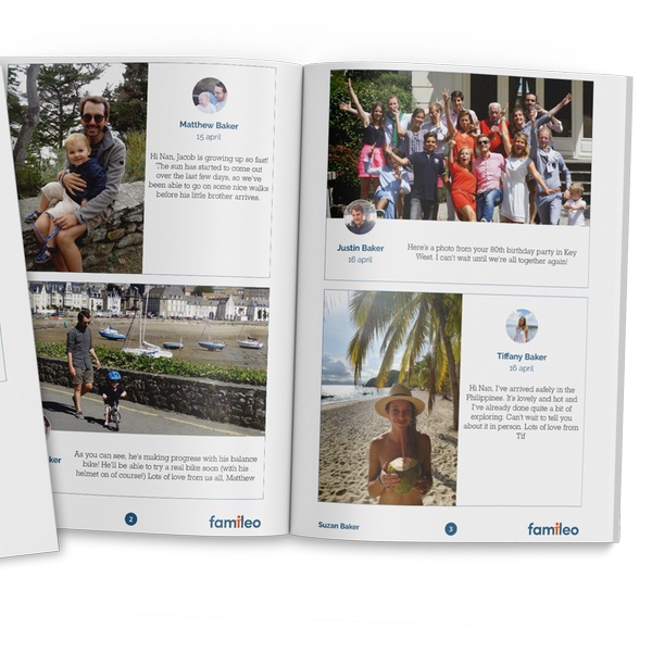 - Simply share photos and messages, as and when you can, in a couple of clicks on the Famileo app and the rest is taken care of, as your news is automatically generated into a family newspaper that is printed and posted to the address of your choice