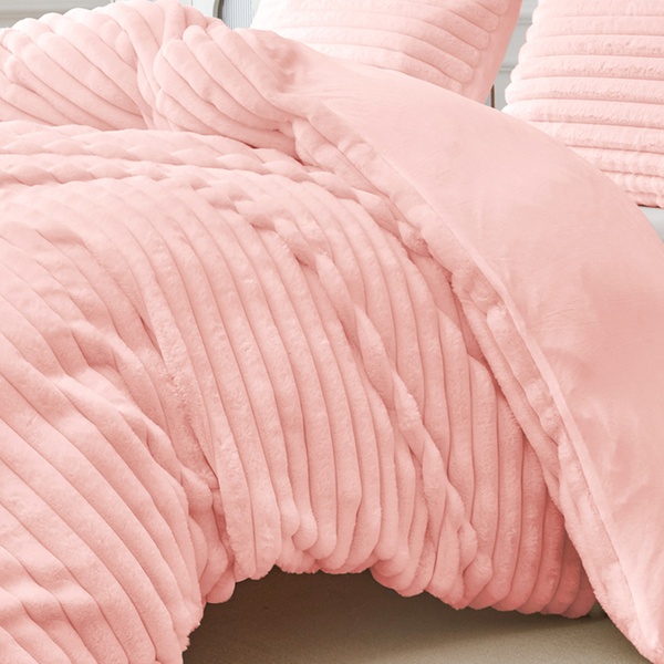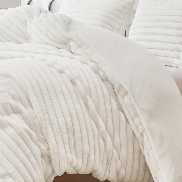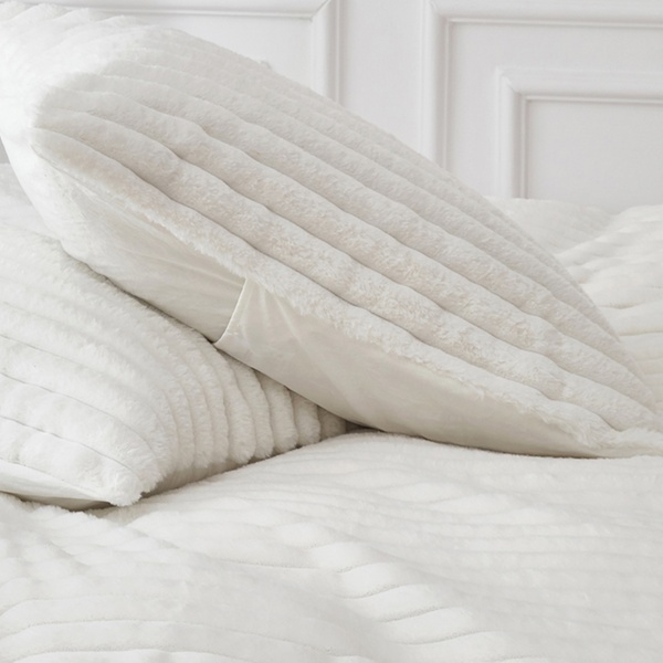 The super-soft, ribbed faux fur adds warmth and luxury to your décor. Complete with a button closure and coordinating pillowcase(s), this set is conveniently machine washable and available in a choice of colours, offering an indulgent and elegant experience.