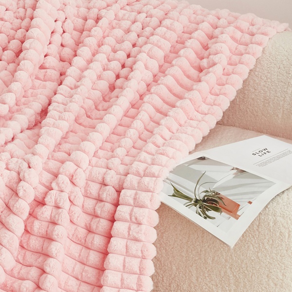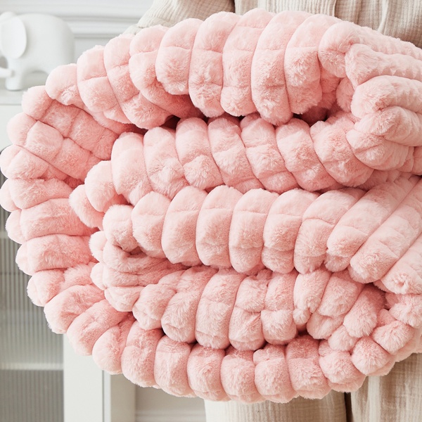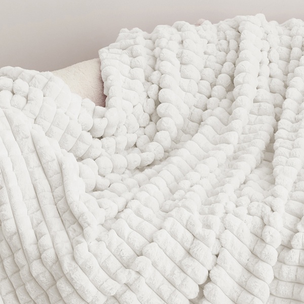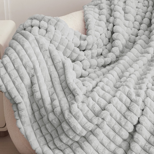 Faux Rabbit Fur Waffle Throw - Super Soft, Luxury Blanket