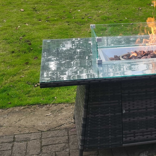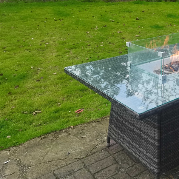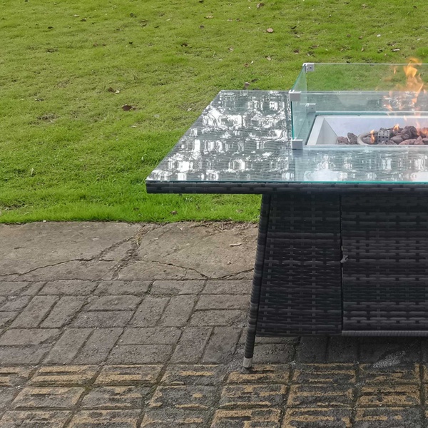 Transform outdoor gatherings with the dark grey mixed rattan fire pit table, blending style and functionality for cosy evenings