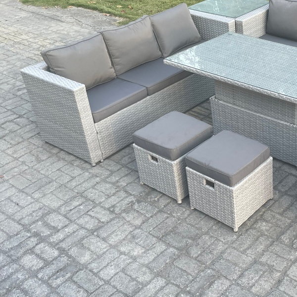 Today's Groupon offers Fimous Rattan-Effect Adjustable Rising Lifting Table Sofa Dining Set, distributed by Shareway Trading Co Ltd.