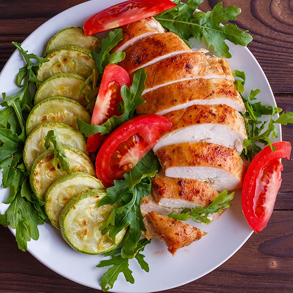 - Lunch: Grilled chicken breast with courgettes in a creamy sauce