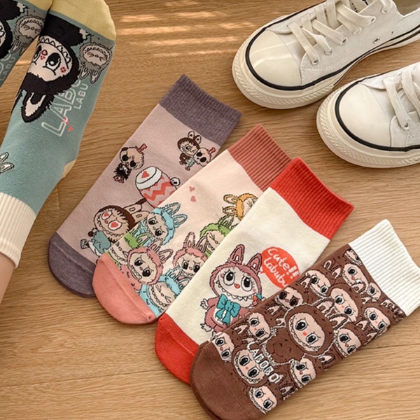 Today's Groupon offers Five Pairs of Labubu-Inspired Cotton Socks, distributed by UKdreamstore.