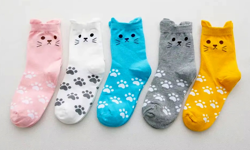 Today's Groupon offers Five Pairs of Women's Cartoon Kitty Socks, distributed by Sensual Sale Co., Limited.