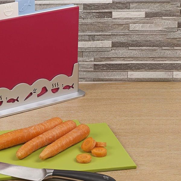 - Chopping board with stand measures 7.5cm (W) x 33.5cm (L) x 8cm (H)