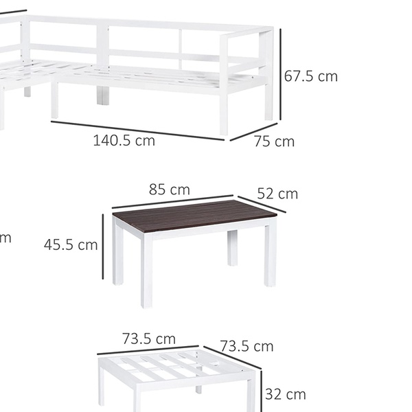 - Set includes 2 2-seater sofas that can make a corner sofa, a footstool, a coffee table and a side table