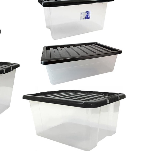 Ideal for the home, school or workplace, this set of five storage boxes comes with black lids with handle bump closure