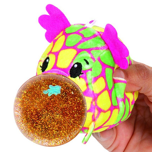 Soft and fun to squeeze, this adorable bubble-blowing plush squeezer comes with a surprise joke and collector’s guide