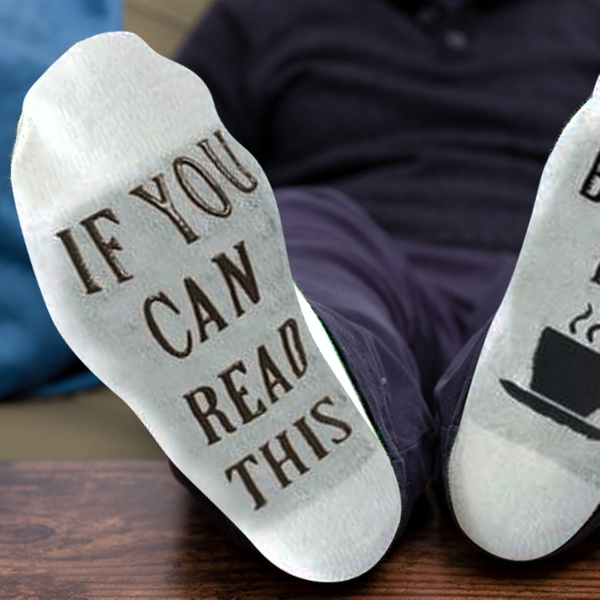 Featuring funny slogan on the bottom, these unisex socks are great to wear all year round; available in three colours