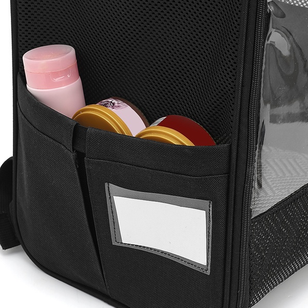 - Includes side pockets for storing pet essentials like water bottles and treats.