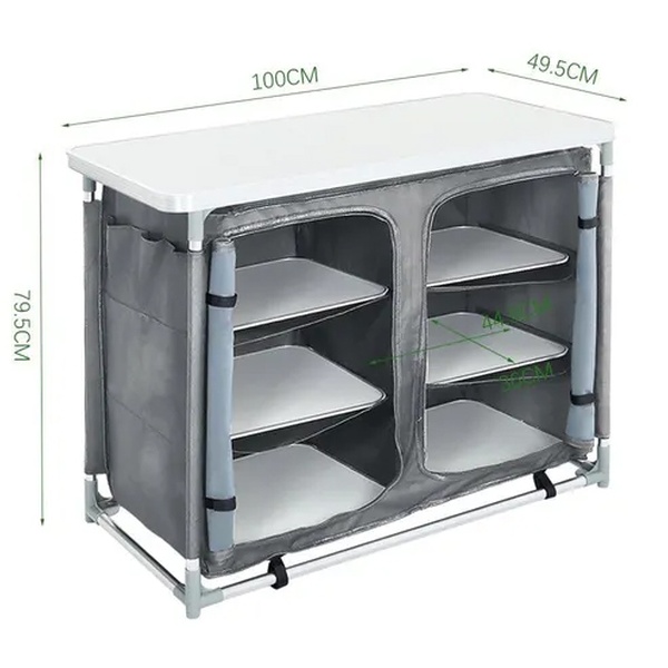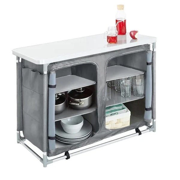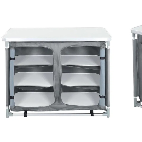 Featuring durable aluminum and 600D Oxford fabric, this portable kitchen offers a lightweight, foldable design for effortless travel