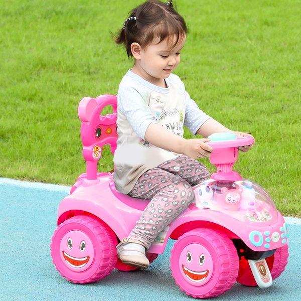 Featuring a foot-to-floor design, this toddler ride-on toy promotes walking skills while delivering hours of fun with lights and music.