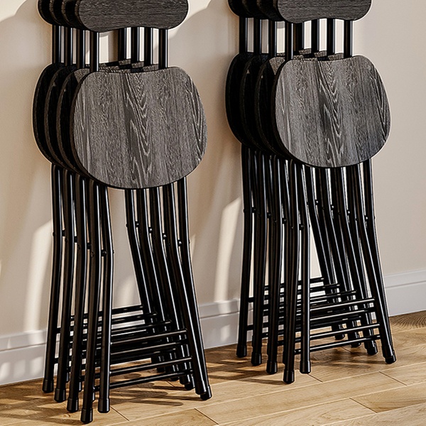 This compact wooden folding chair offers sleek black elegance while transforming tight spaces into stylish seating areas