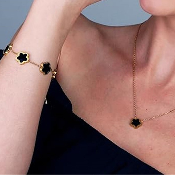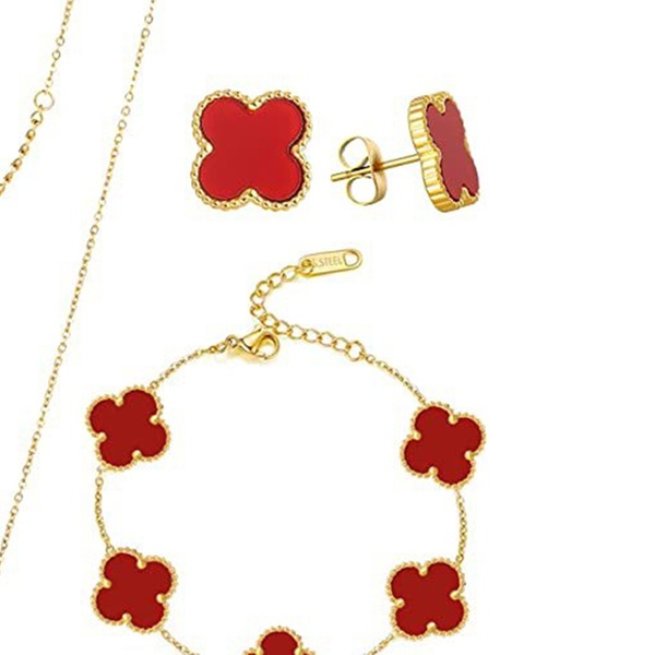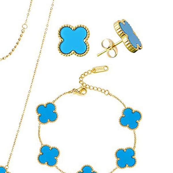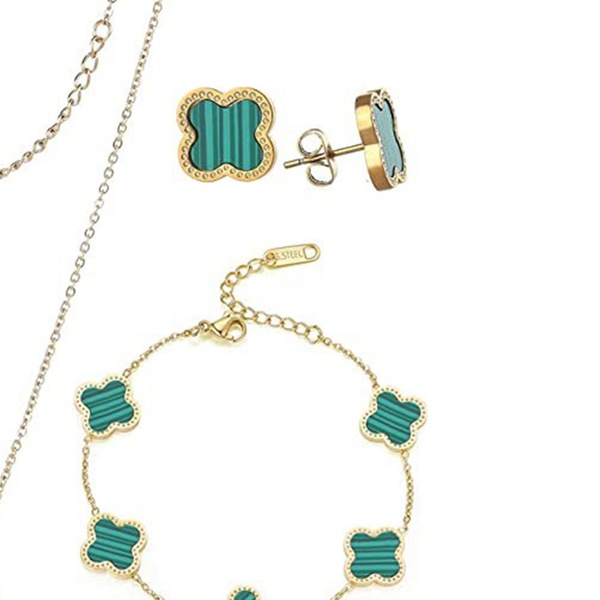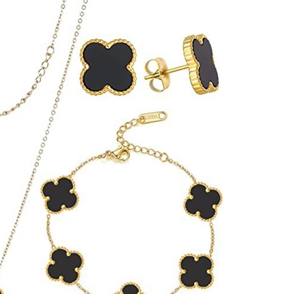 - Comes with matching necklace (40+5cm) and stud earrings (13mm), all featuring the four-leaf clover design.