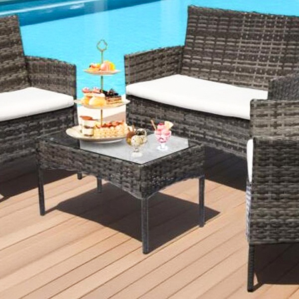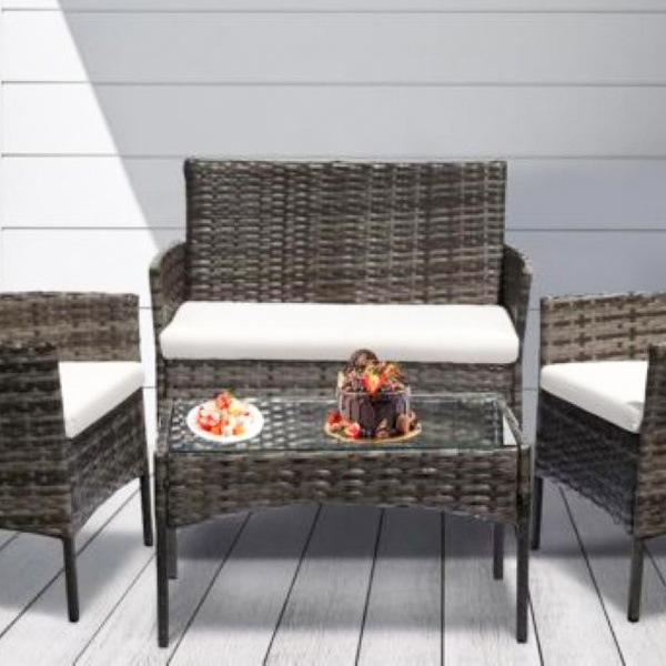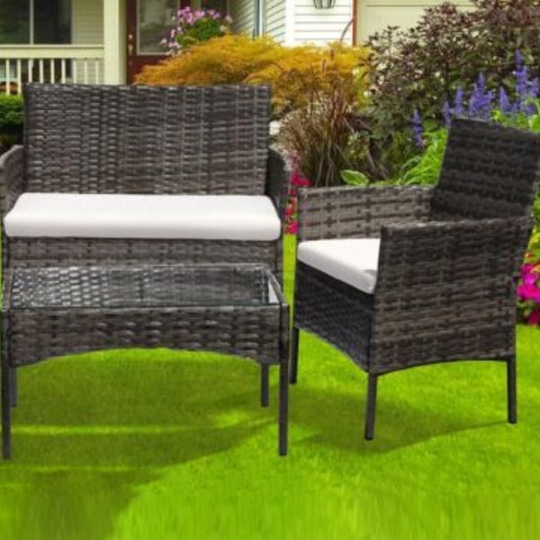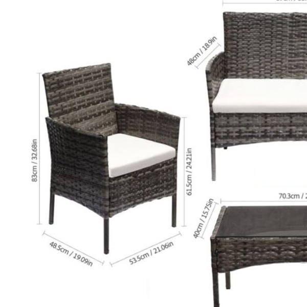 - Versatile configuration with 2 patio chairs (48.5cm x 53.5cm x 83cm), 1 loveseat (89cm x 48cm x 83cm), and 1 coffee table (70.3cm x 40cm x 39cm)
