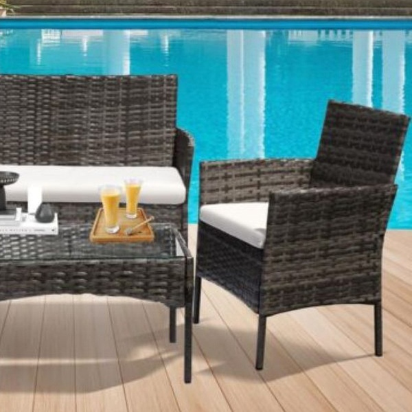Today's Groupon offers a 4-Piece Grey Rattan-Effect Dining Set, distributed by Mesolab Services Ltd.