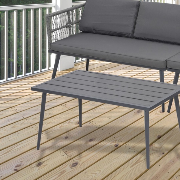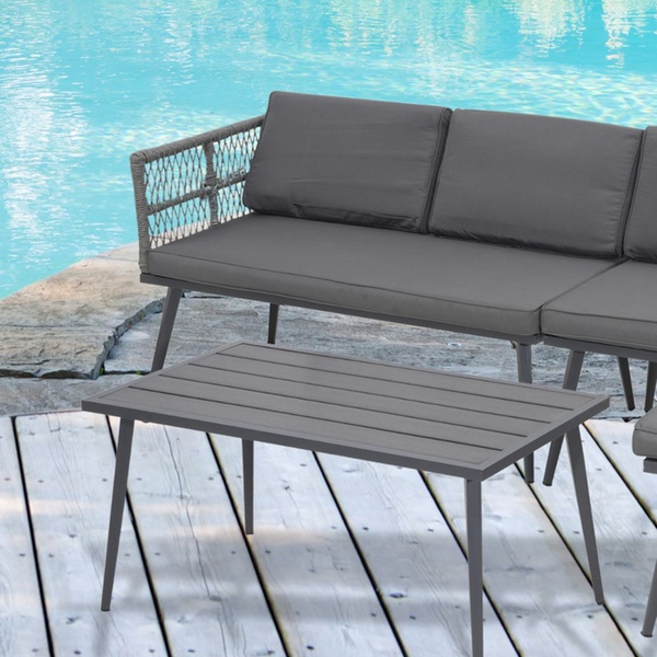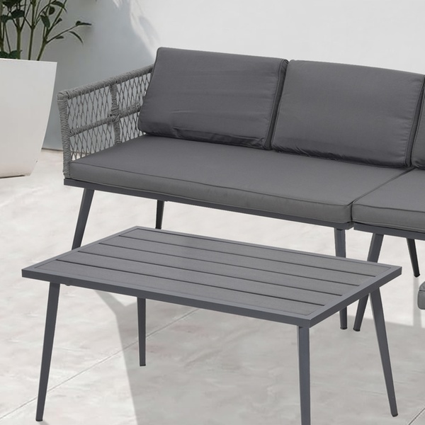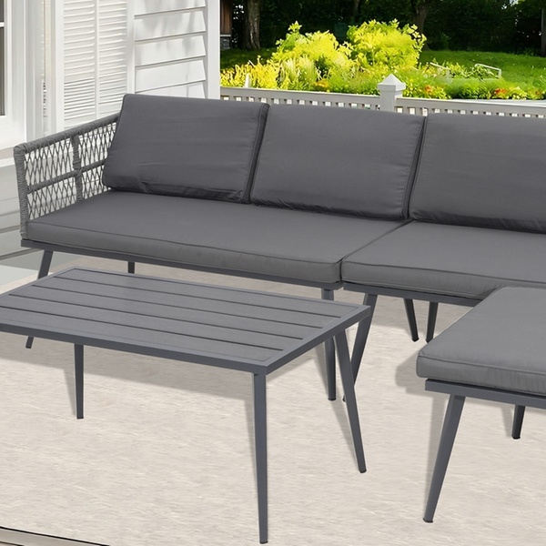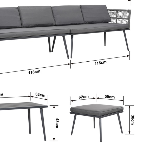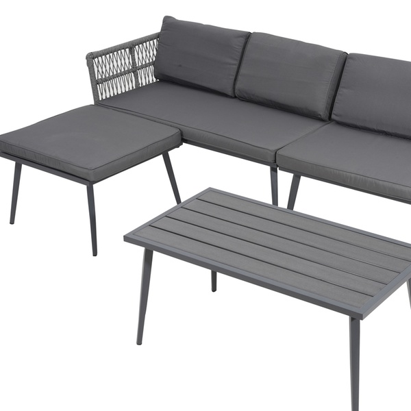 - 4-seater set: includes a spacious sofa, versatile footrest (stool) and practical table