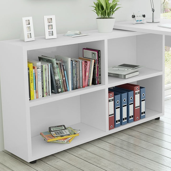 Add a touch of modern style to a living room or office with this corner desk which features four shelves to store essentials