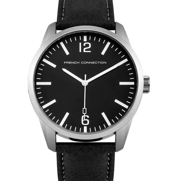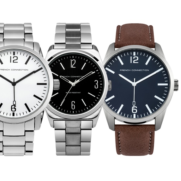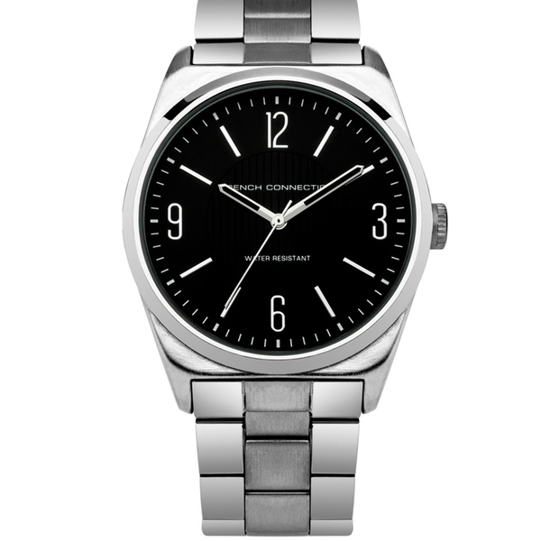 French Connection silver two tone men’s bracelet watch with black dial - SFC102BM
