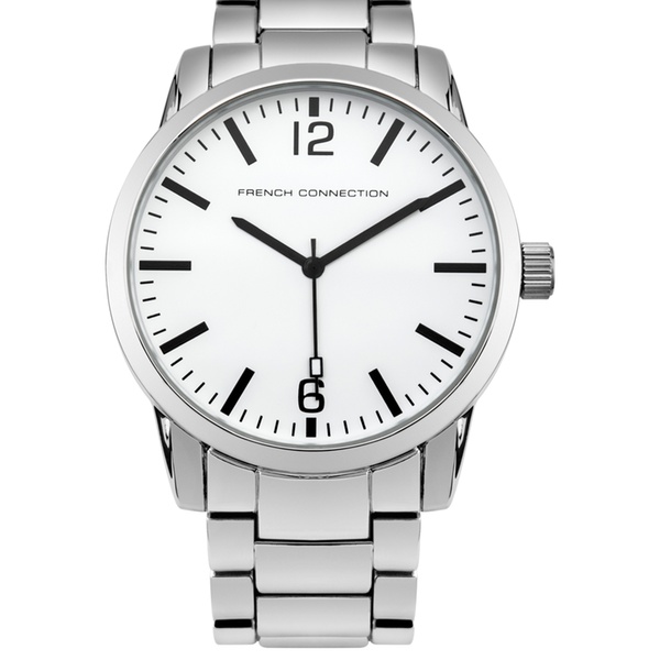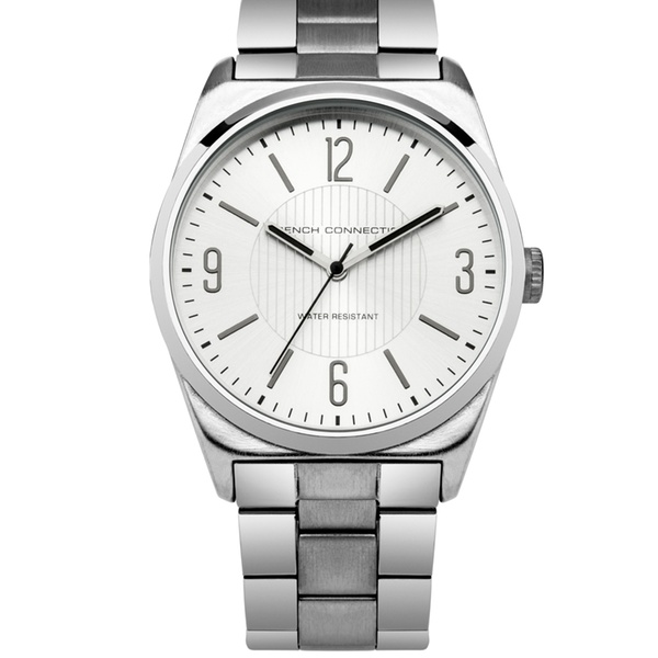 French Connection silver two tone men’s bracelet watch with silver tone dial - SFC102SM