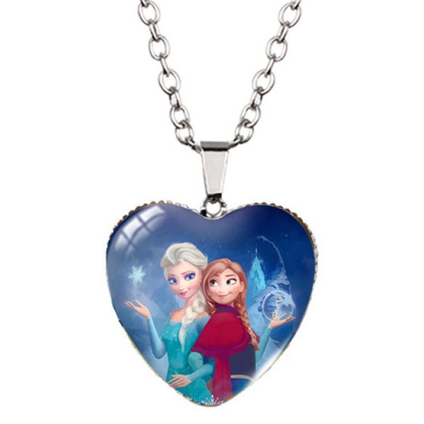 - Heart charms feature the starring princess duo, placed upon a fine silver chain