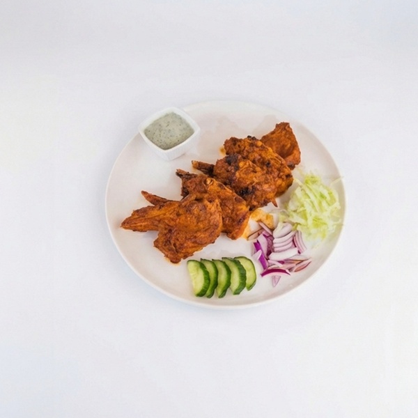 Mains include: Fusion chicken curry or lamb curry, mutton or veg kofta, palak paneer, paneer tikka masala, tandoori half chicken, Fusion chicken/fish/lamb/beef burger, boneless chicken strips or 8 wings, and chicken or lamb biryani.