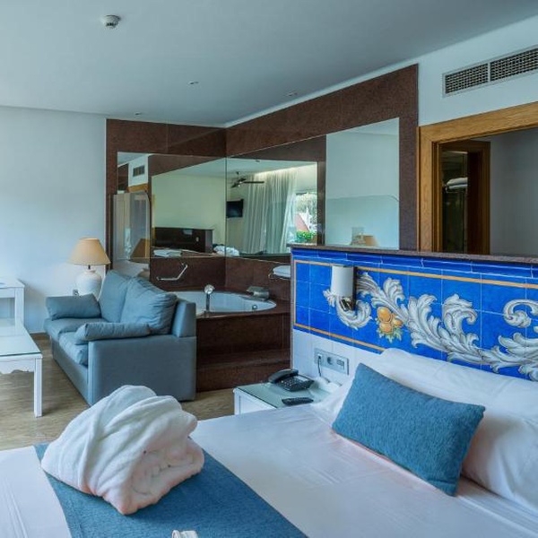 The BLUESEA Costa Jardin Spa boasts a range of stylish and comfortable rooms, including standard, superior, and spacious suites. Each room is elegantly furnished with modern amenities, offering a cosy retreat. Guests can enjoy in-room facilities such as air conditioning, Wi-Fi, a private balcony or terrace, and flat-screen TVs, ensuring a relaxing and enjoyable stay.