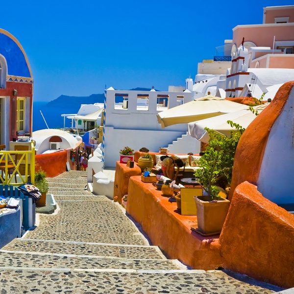 - Day 2: fly from Athens to Santorini & stay overnight in Santorini