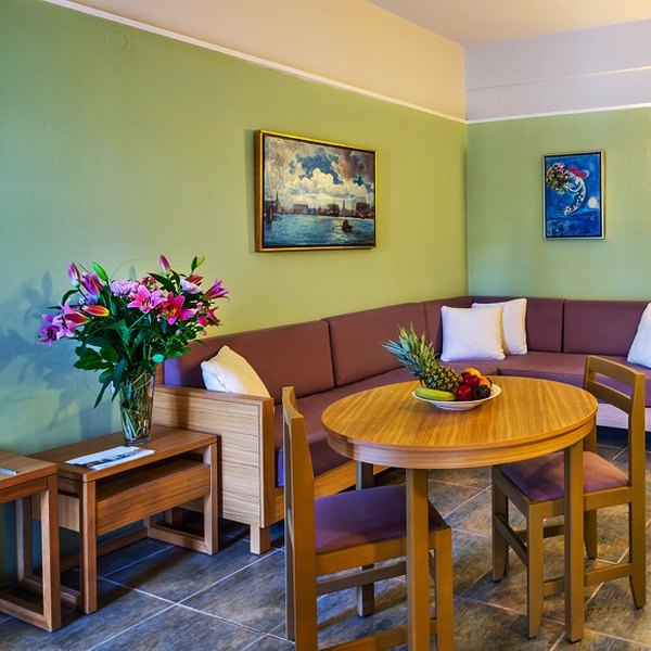 The hotel’s studio apartments feature a fully equipped kitchenette, a fridge, a marble bathroom with hairdryer and shower, air conditioning, satellite TV, and a balcony or veranda offering garden or pool views. With multiple pools, restaurants and bars, the hotel offers a well-rounded holiday experience for all those who like to have everything within hand’s reach.